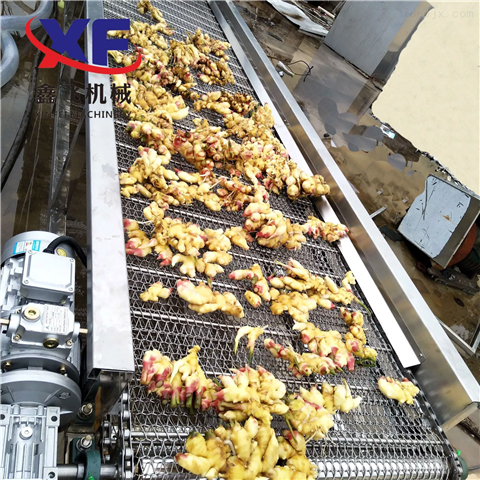 4、使用輸送線將切好的蔬菜集中,再用物料周轉(zhuǎn)車運送到滾揉機處。